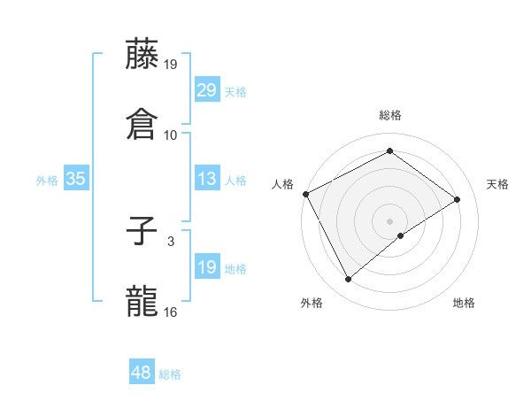 藤倉 子龍さんを姓名の画数から五運を鑑定