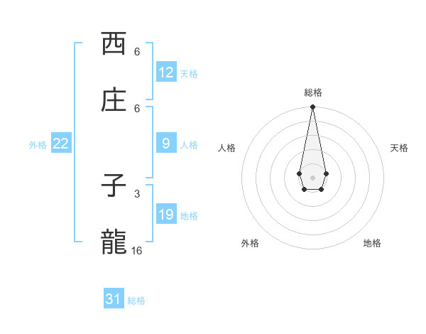 西庄 子龍さんの総格は31画の5点!