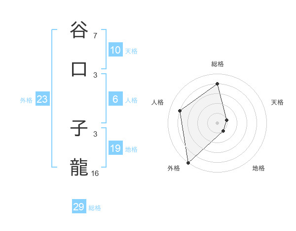 谷口 子龍さんの総格は29画の4点!