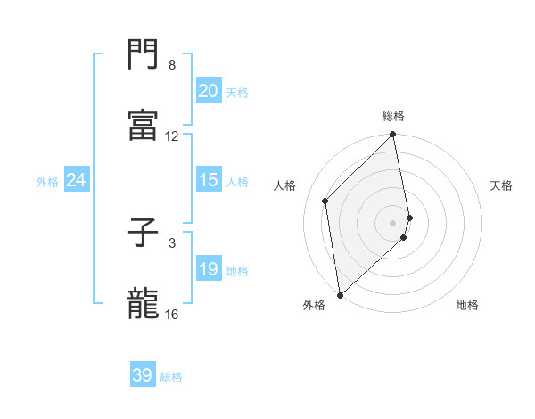門富 子龍さんの総格は39画の5点!