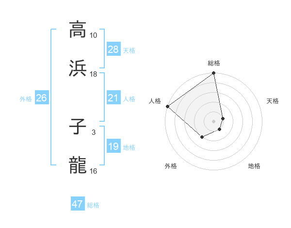 高浜 子龍さんを姓名の画数から五運を鑑定