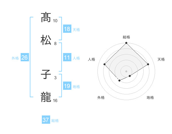髙松 子龍さんを姓名の画数から五運を鑑定