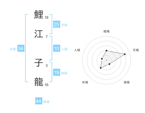 鯉江 子龍さんの総格は44画の2点!