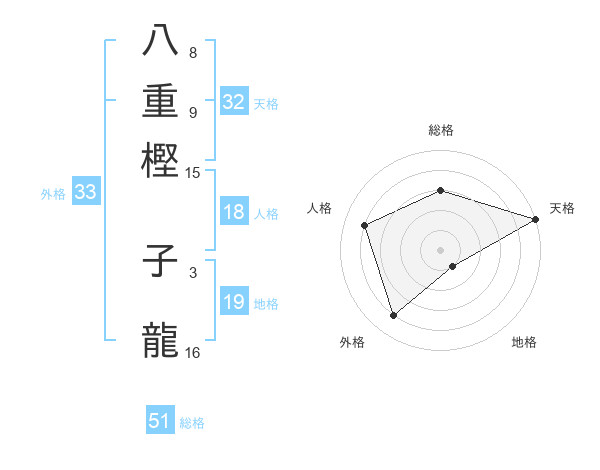 八重樫 子龍さんの総格は51画の3点!