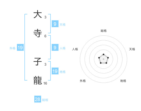 大寺 子龍さんの外格は19画の1点