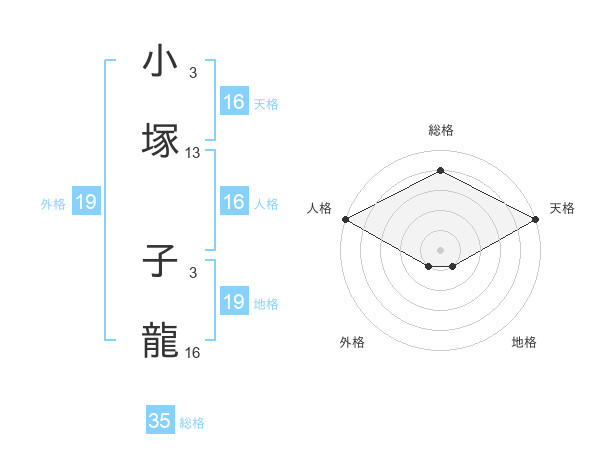 小塚 子龍さんの総格は35画の4点!