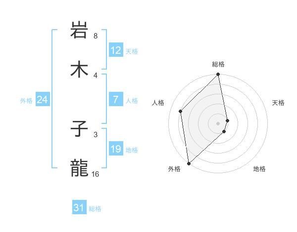岩木 子龍さんの総格は31画の5点!