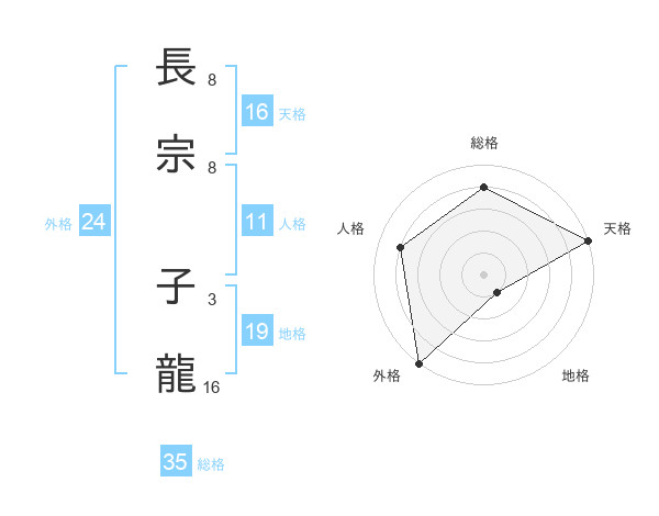 長宗 子龍さんの総格は35画の4点!