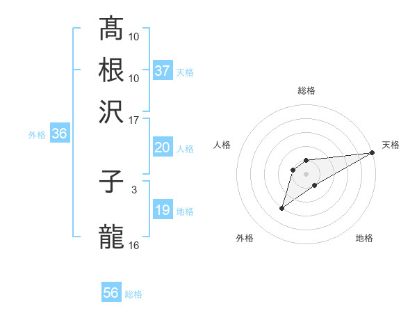 髙根沢 子龍さんの総格は56画の1点!