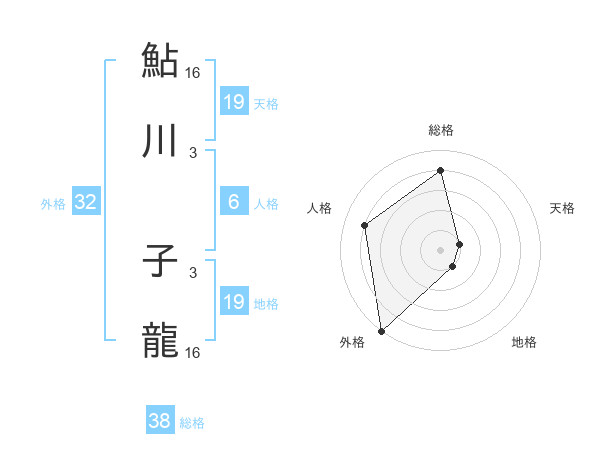 鮎川 子龍さんを姓名の画数から五運を鑑定