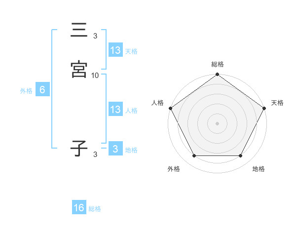 三宮 子さんの総格は16画の5点!