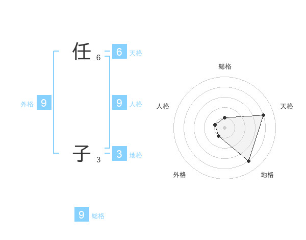 任 子さんの総格は9画の1点!