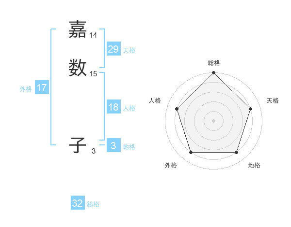 嘉数 子さんの総格は32画の5点!