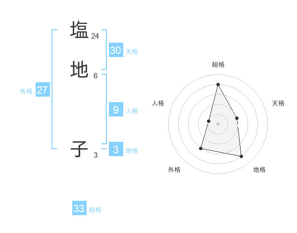 塩地 子さんの総格は33画の4点!