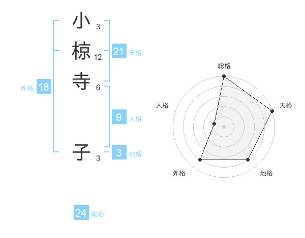 小椋寺 子さんを姓名の画数から五運を鑑定
