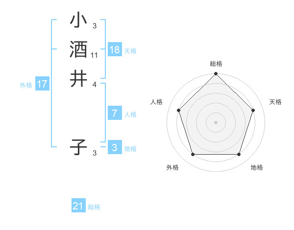 小酒井 子さんの総格は21画の5点!