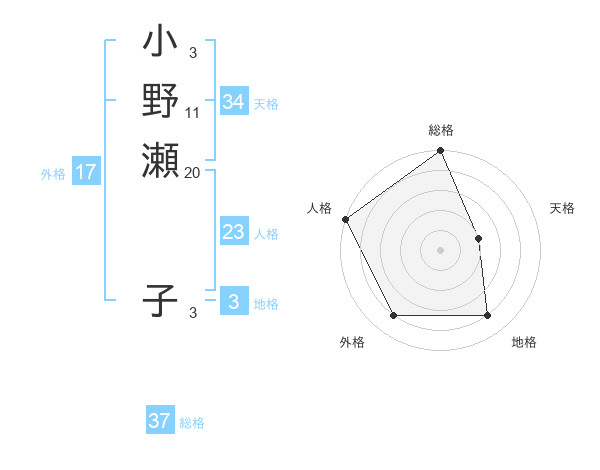 小野瀬 子さんを姓名の画数から五運を鑑定