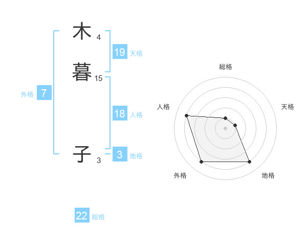 木暮 子さんの総格は22画の1点!