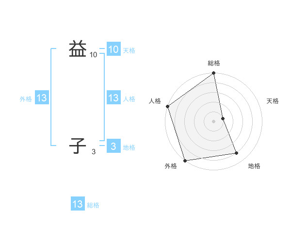 益 子さんの総格は13画の5点!