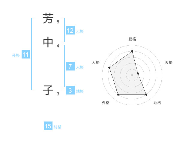 芳中 子さんの総格は15画の4点!