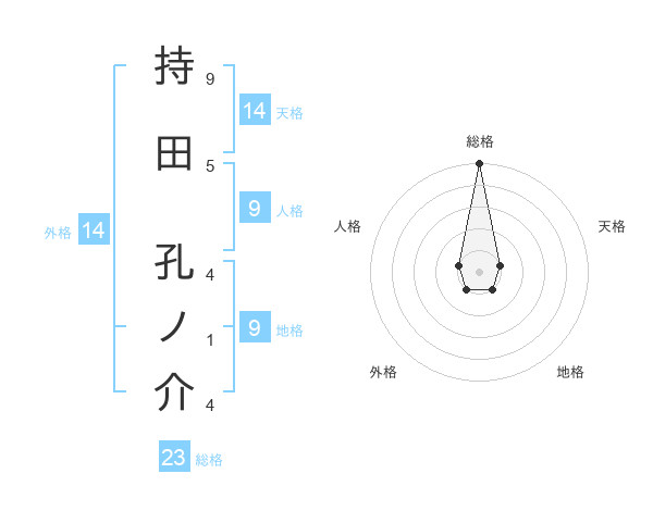 持田 孔ノ介さんを姓名の画数から五運を鑑定