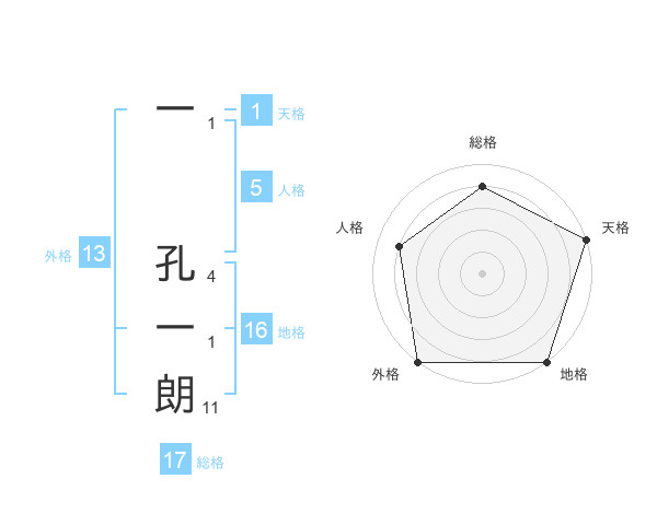 一 孔一朗さんを姓名の画数から五運を鑑定