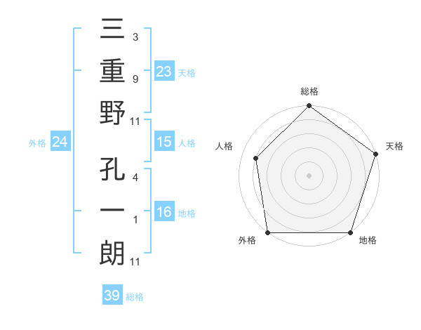 三重野 孔一朗さんを姓名の画数から五運を鑑定