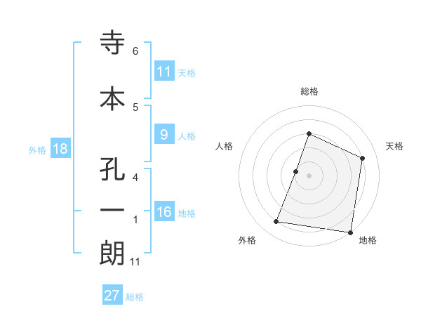 寺本 孔一朗さんの総格は27画の3点!