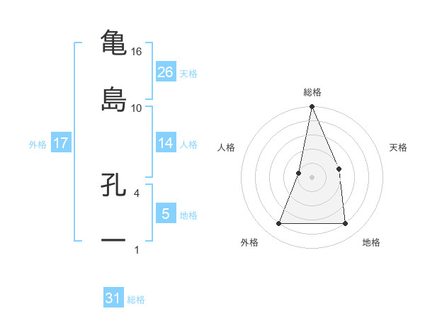 亀島 孔一さんを姓名の画数から五運を鑑定