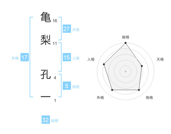 亀梨 孔一さんの総格は32画の5点!