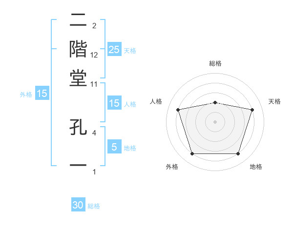 二階堂 孔一さんを姓名の画数から五運を鑑定
