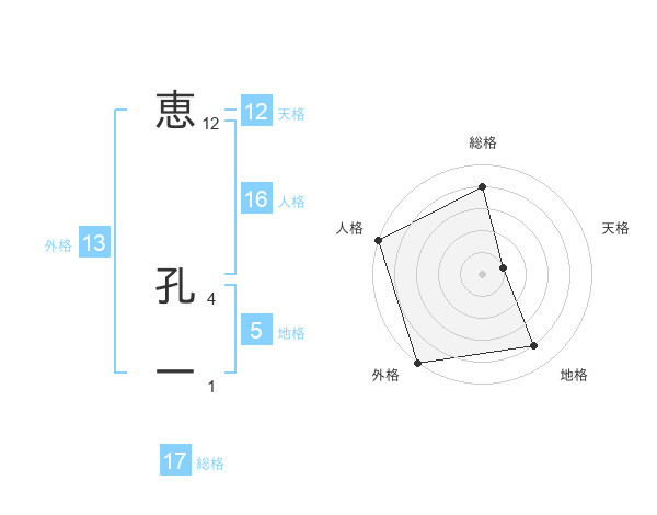 恵 孔一さんの外格は13画の5点!