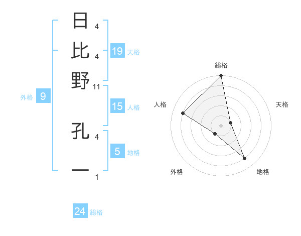 日比野 孔一さんを姓名の画数から五運を鑑定