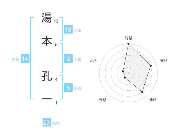 湯本 孔一さんの総格は23画の5点!