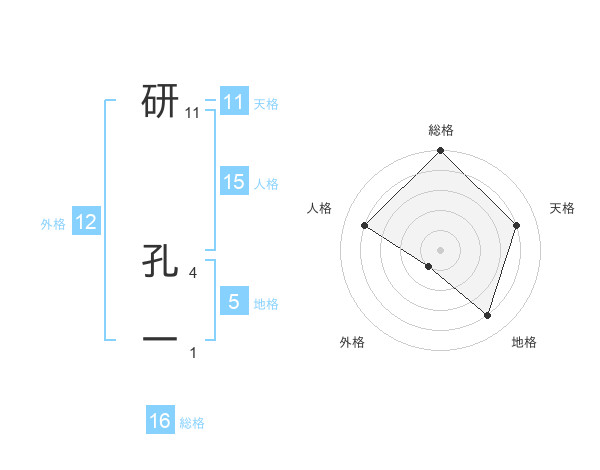 研 孔一さんの総格は16画の5点!