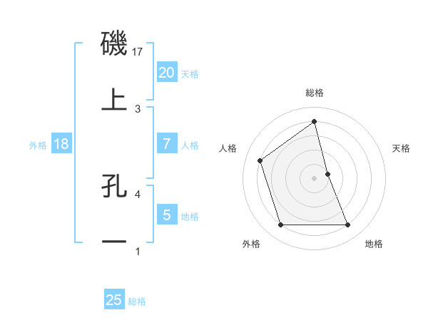 磯上 孔一さんの総格は25画の4点!