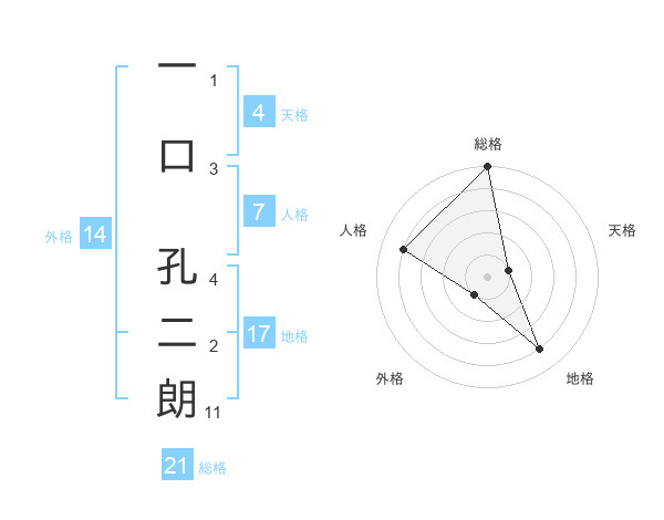 一口 孔二朗さんの総格は21画の5点!