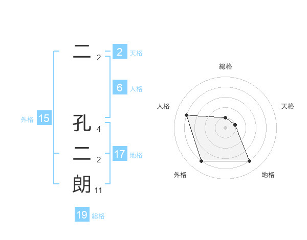 二 孔二朗さんの外格は15画の4点!