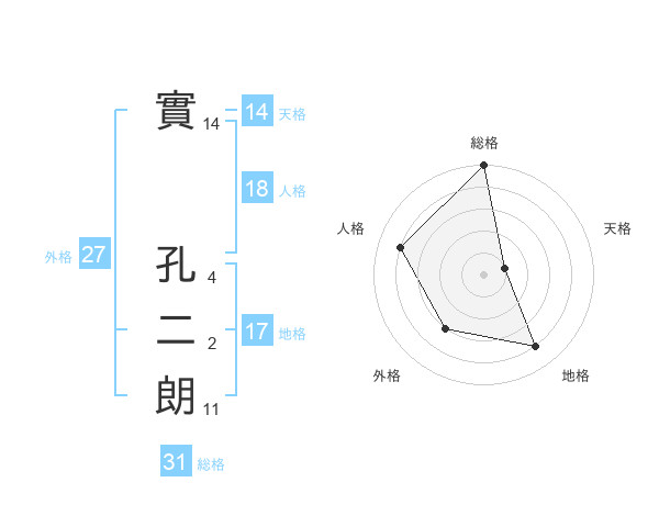 實 孔二朗さんを姓名の画数から五運を鑑定