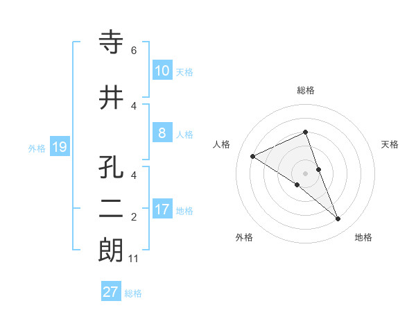 寺井 孔二朗さんの総格は27画の3点!