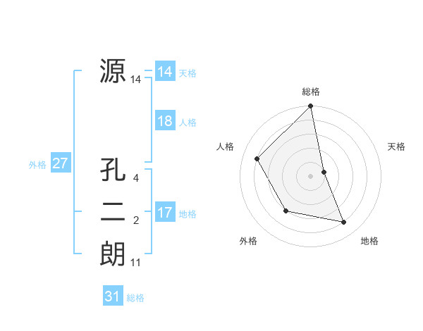 源 孔二朗さんの外格は27画の3点!