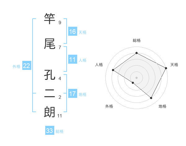 竿尾 孔二朗さんを姓名の画数から五運を鑑定