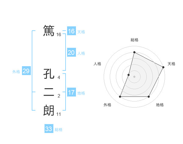 篤 孔二朗さんの天格は16画の5点!