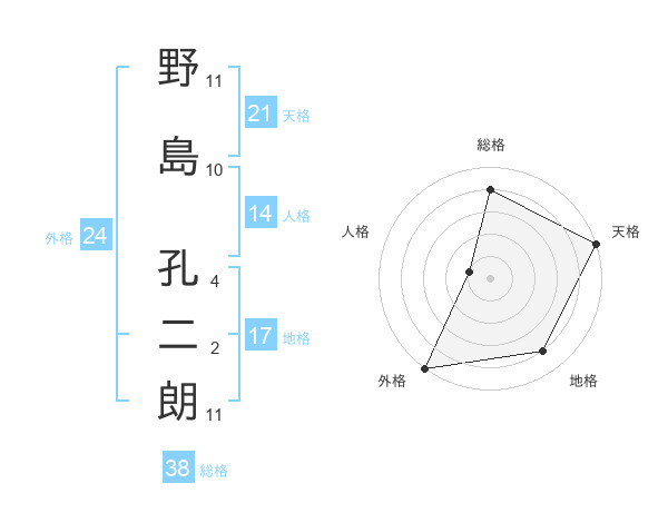 野島 孔二朗さんを姓名の画数から五運を鑑定