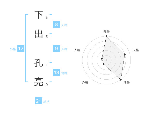 下出 孔亮さんの総格は21画の5点!