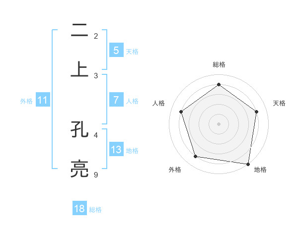 二上 孔亮さんの地格は13画の5点!