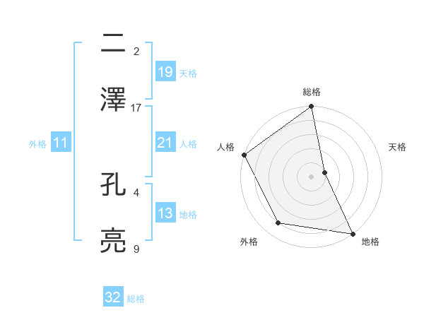 二澤 孔亮さんを姓名の画数から五運を鑑定
