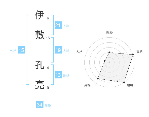 伊敷 孔亮さんの天格は21画の5点!