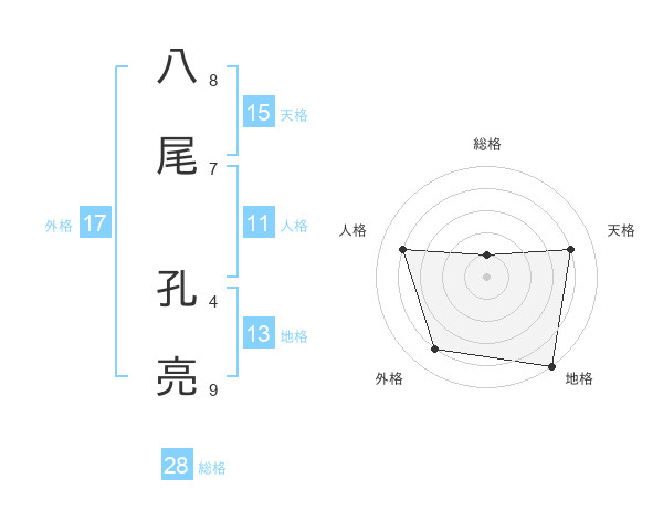 八尾 孔亮さんの総格は28画の1点!