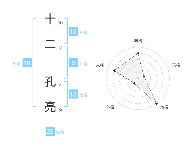 十二 孔亮さんの地格は13画の5点!